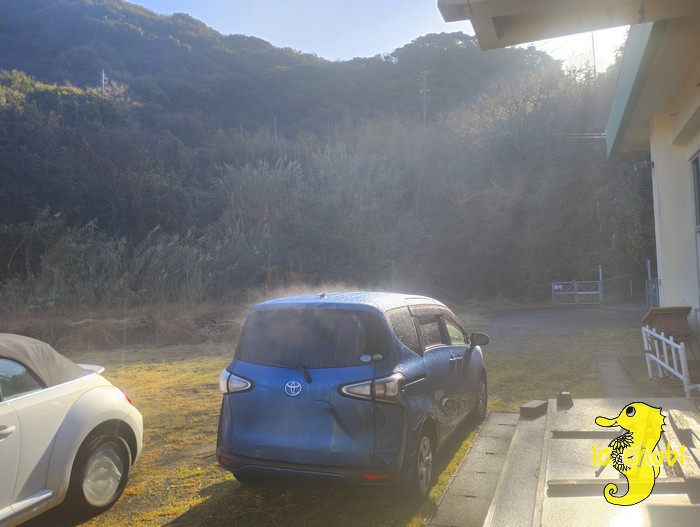 車からもくもく湯気がでてました🍵